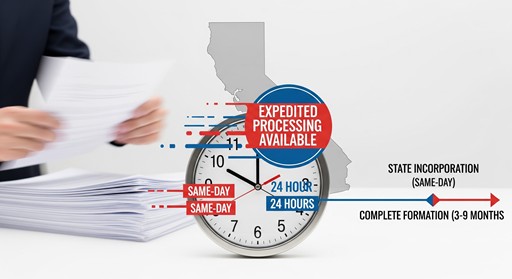 • Belief that expedited California filing significantly shortens overall formation timeline
