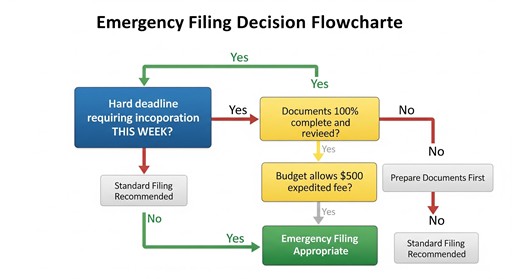 • Same-day filing: $530 total ($30 + $500 expedited) for state incorporation approval same business day