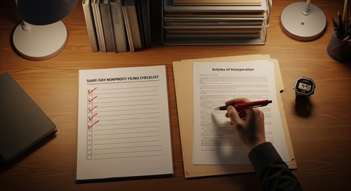 When you need your non-profit documents prepared and ready for same-day submission in Perris, CA, the difference between success and rejection often comes down to one thing: document accuracy. This checklist walks you through exactly what needs to be in order before you pay for expedited state processing — and what “same-day” realistically means for each stage of the formation process.